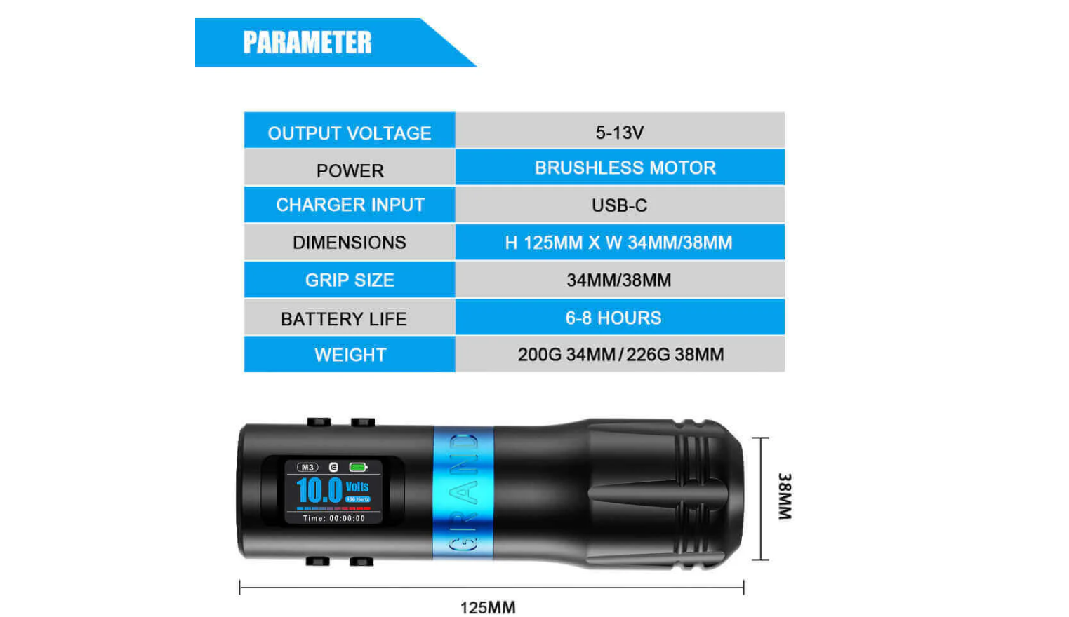 COMPLETE UPDATE – As the fourth generation of Emalla brand’s wireless tattoo pen product, the performance and technology of this machine have been further upgraded in all aspects, including grips, brushless motor and LED screen.